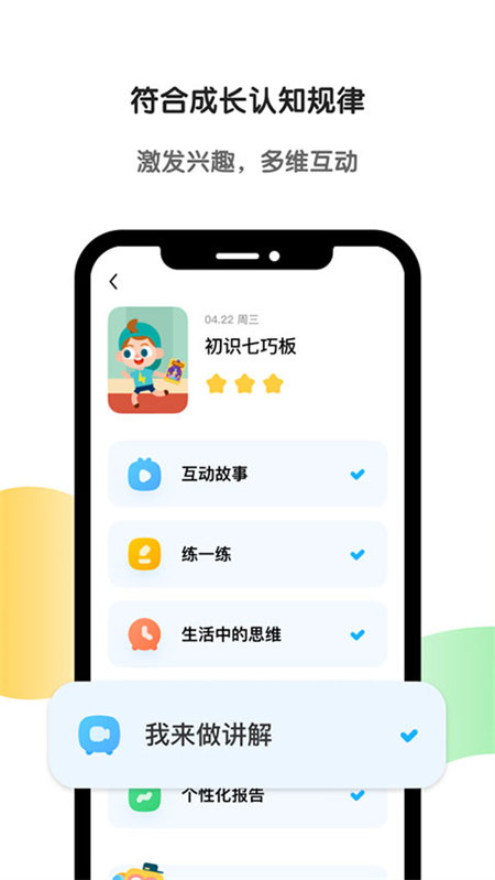 沉浸式课堂,激发孩子学习兴趣;软件简单易操作,方便孩子自主学习。