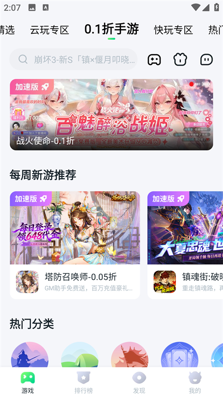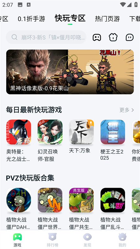 1、下载后打开软件就能看到超多的热门游戏。