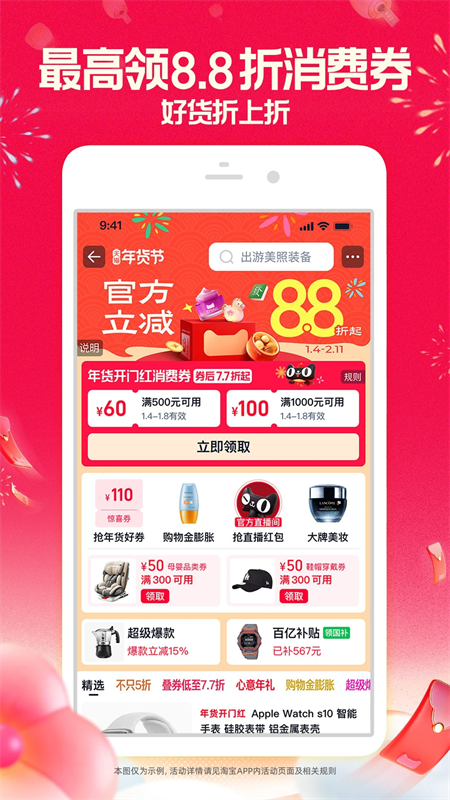 ● 年货狂欢季,官方立减商品8.8折起,叠券7.7折起