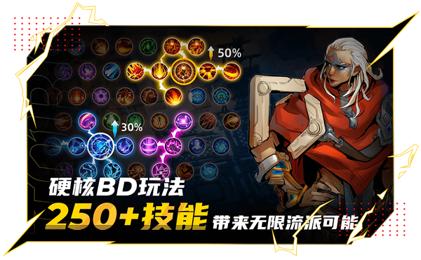 每个职业有6个主要技能,每两个技能可以搭配出一个全新的技能。玩家最终可以搭配出36个技能,以及120种不同的技能玩法组合,玩家可以根据战斗策略不同任意切换。