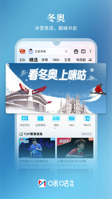 冬奥会、英超、西甲、德甲、意甲、法甲、NBA、WTT、UFC、《女神蒙上眼》《玉茗茶骨》《马背摇篮》等众多精彩内容等你来看,海量热门赛事直播、精彩影视剧集锁定咪咕视频