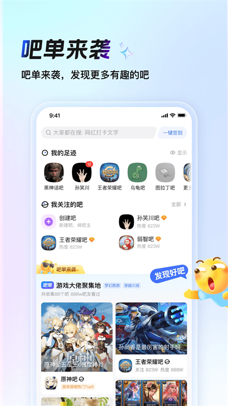 覆盖各个游戏领域,无论你是喜欢MOBA对战游戏:英雄联盟、魔兽世界。还是钟情FPS射击游戏:CS:GO、绝地求生。在游戏吧你都能找到和你爱好相同的吧友。在这里,不管是新游热游还是小众精品,你随时可以找到攻略学习大神操作、交朋友相约游戏开黑、和众多玩家一起讨论游戏心得,与大家分享交流游戏趣闻。