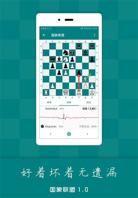 3、分析系统,应用专业化Stockfish9引擎,步步为您分析,助您进步。