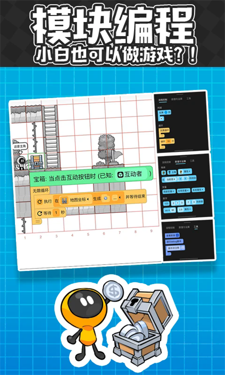 只需要简单的几步,画完的角色可以动起来;无论是音乐、场景、机关、武器、人物都可以根据你的想象做出来。