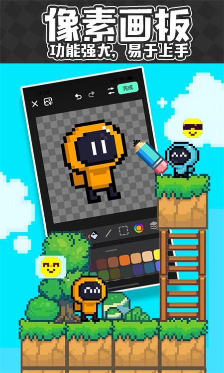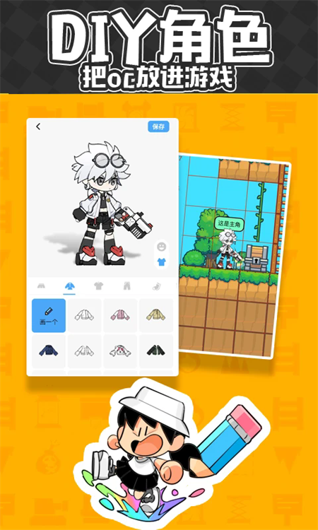 无论是主题背景、人物角色、机关障碍、道具和头像,全部都可以随时随地自由创作!同时还可以提交自己的素材作品到商店,分享给其他创作者使用以及在创作。