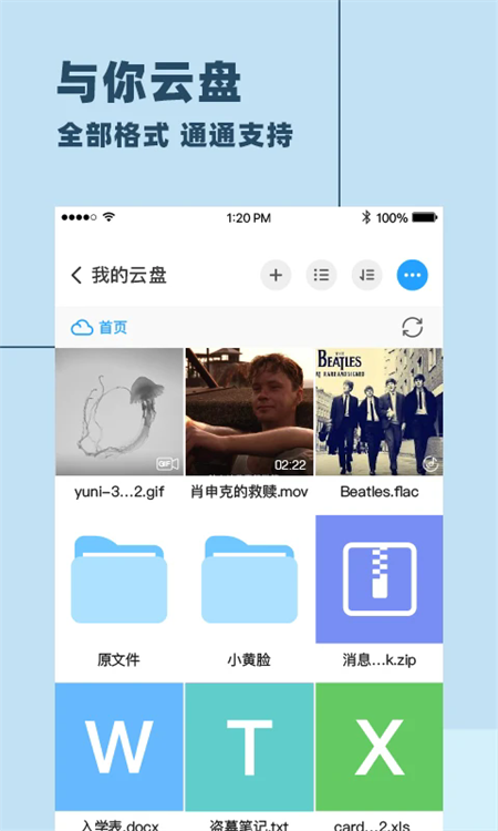 -云盘支持无损上传原图(jpg,heic),视频(自动转码mp4),各种格式文件(txt,PDF,mp3,zip等等)。