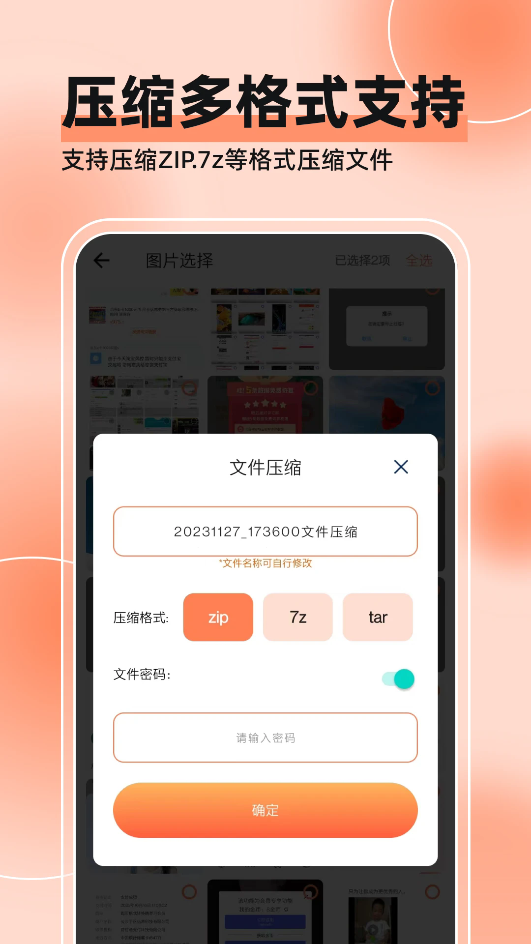 2、图片压缩:照片压缩宝,支持多张图片处理,可以通过大小、像素、比列进行图片压缩,可以自定义图片的大小以及照片的保存方式。