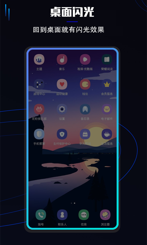 只要回到桌面闪光就会有边缘闪光,样式可以根据自己的喜好去设置。