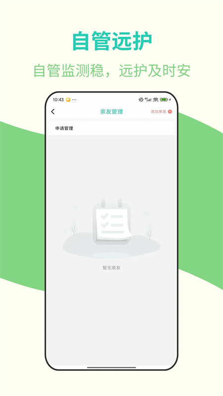 3、亲友分享:您关心的亲人不在身边,没关系!通过此功能,您可以随时了解亲人的测量结果,有任何的异常,您都可以及时知道。