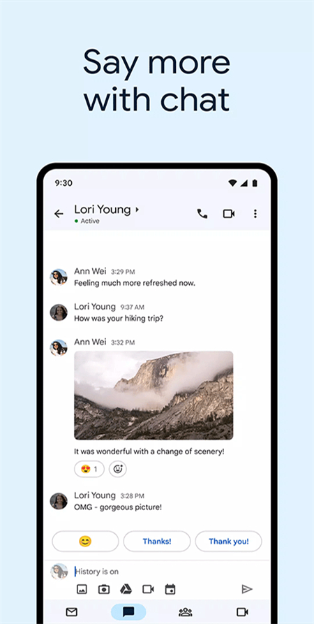 3、开启谷歌聊天,与他人联系、创建和协作。