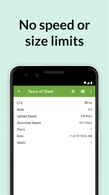 最新版本的 uTorrent Android 采用了简洁、直观的设计,使您可以轻松地直接从手机上下载种子文件。Android 种子应用程序使用 BitTorrent P2P 协议实现超大文件的快速下载。和我们的桌面版种子客户端一样,uTorrent Android 使您可以一次下载多个种子文件。如果您下载的是音乐或视频文件,那么整合的媒体播放器就可以提供出色的音乐收听和视频播放功能。