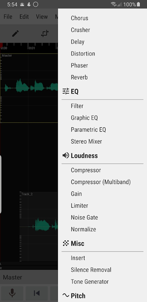 6、适用于音频文件,包括失真,混响,动态范围压缩,除去人声,多了一些有用的效果。
