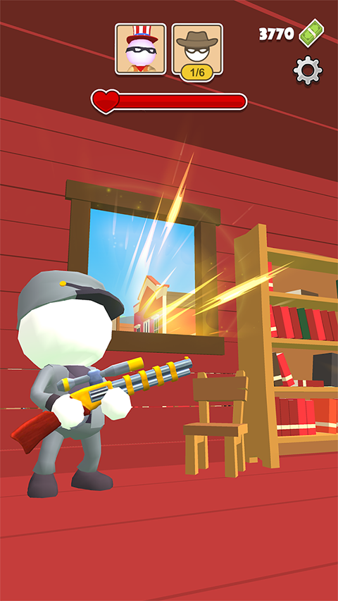 玩家可以升级角色的伤害度、装弹速度和瞄准速度等属性。游戏中的场景丰富多样,包括高楼、空地和移动车辆等。每一次完成关卡后都有机会获得惊喜武器和奖励。