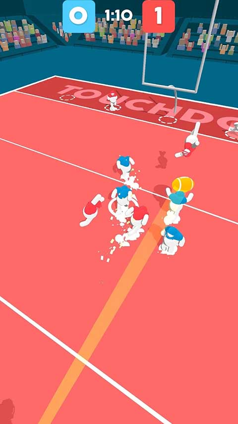 橄榄球大作战游戏是一款结合了体育竞技与休闲娱乐的手机游戏,其英文名也被称为Ball Mayhem。多种模式供玩家选择,包括单人挑战和团队合作,玩家操控至少3人球队,通过屏幕点击与滑动操控队员带球移动,对手是来自全球各地优秀玩家。游戏关卡众多,每场比赛约两分钟限时,玩家要突破对手防线得分,避免己方失分,在倒计时内争取最高分,展现技巧得分。