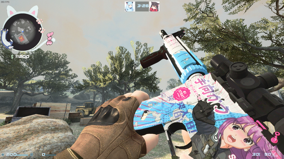 大部分武器为二次元风格皮肤武器,部分带有印花。部分武器支持特殊功能:如按P键可检视(警察的多种手枪、霰弹枪等),双枪、AWP、SG550支持皮肤切换。