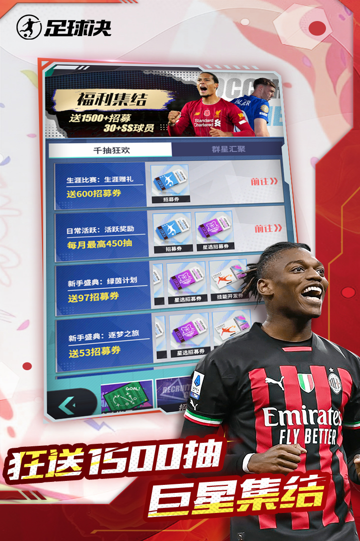 足球决官方版中有非常多以现实为原型的知名球员,例如库蒂尼奥,玩家可以在游戏中通过招募球员抽取他们,让这些球员在你的手底下发光发热,成为你的得力球员。