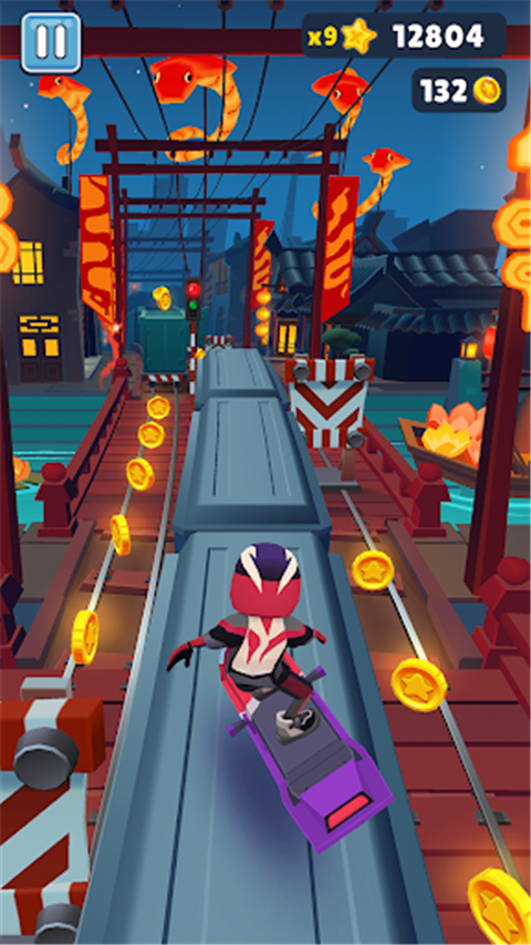 2、用你再熟悉不过的操作模式和技巧,操控你的角色进行冒险跑酷,收集沿途金币。