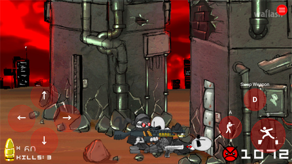 疯狂催化剂游戏中除了最基本的拳打脚踢以外玩家可以通过击落对手的武器并拾取来获得全新的武器,包括沙鹰、机枪、散弹枪和喷火器,拿上对手的武器来发起最猛烈的进攻吧。