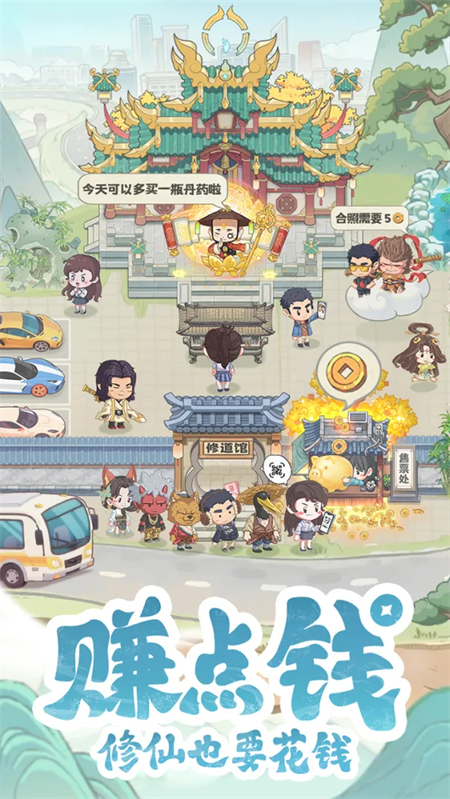 游戏中的神仙也进行了创新,每一位神仙在现代都有不同的职业,比如小摊贩、地质勘探师等,你需要利用好他们的职业去进行道观的创收,只有你赚的越多,弟子们才能更快的修炼,白天种田炼丹,晚上打坐修仙。