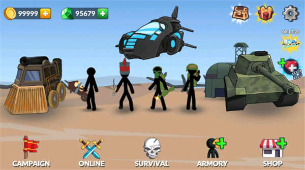 火柴人帝国之战无限钻石和金币版不仅提供了各种类型的兵种进行组合搭配,而且我们的玩家还可以在游戏里挑战各种不同的关卡,然后和不同类型的军队去作战。当然,我们也可以不断升级自己的兵种,提升它们的战力。