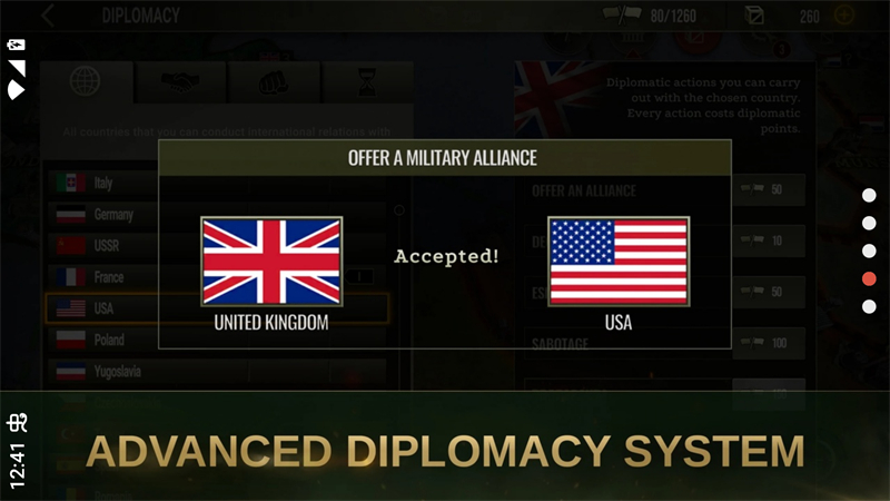 - 科学和技术:通过8个不同的科学研究分支来增强您的战术能力。如果轰炸袭击和制空权是您的风格,请投资空军分支。或者,如果您正在创建世界上最强大的联盟以最大程度地降低风险,请研究外交。