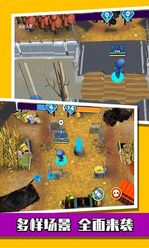 游戏操作简单容易上手,拖拽左边的摇杆进行移动,点击右边的按钮发射子弹,即可向敌人发起攻击。简单的操作设定更考验走位和预判,无限拓展操作空间。
