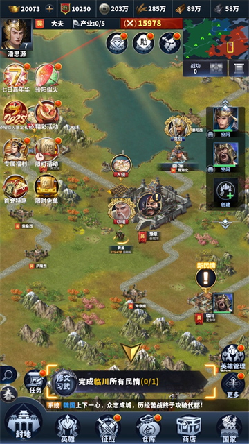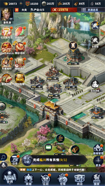 一改传统三国游戏的虚拟主城玩法模式,以三国历史真实的地图为蓝本,全方位还原300余座城池,100余三国武将,以及10多种攻城器械,30余种兵种。