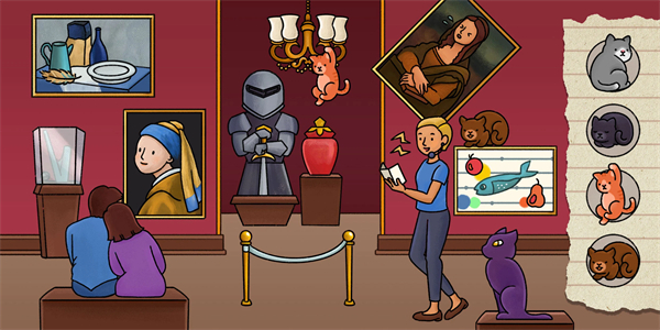 3、根据所接受到的委托任务,在不同的场景中找到丢失的小猫咪,这非常考验玩家的观察力。