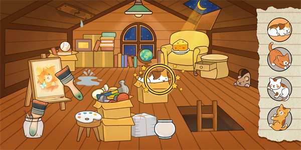 5、右侧是玩家需要找到的猫咪和物品,玩家需要将全部猫咪和物品找齐才可以通关。