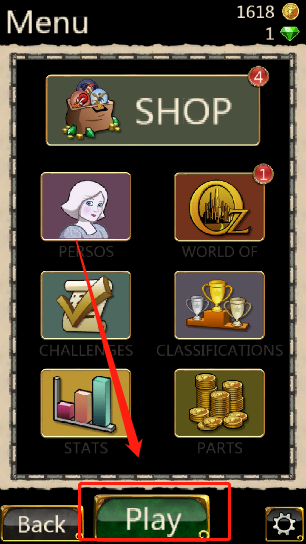 点击开始就可以直接进入游戏画面,同时玩家点击菜单按钮可以进入任务道具页面,了解各种任务和购买道具。