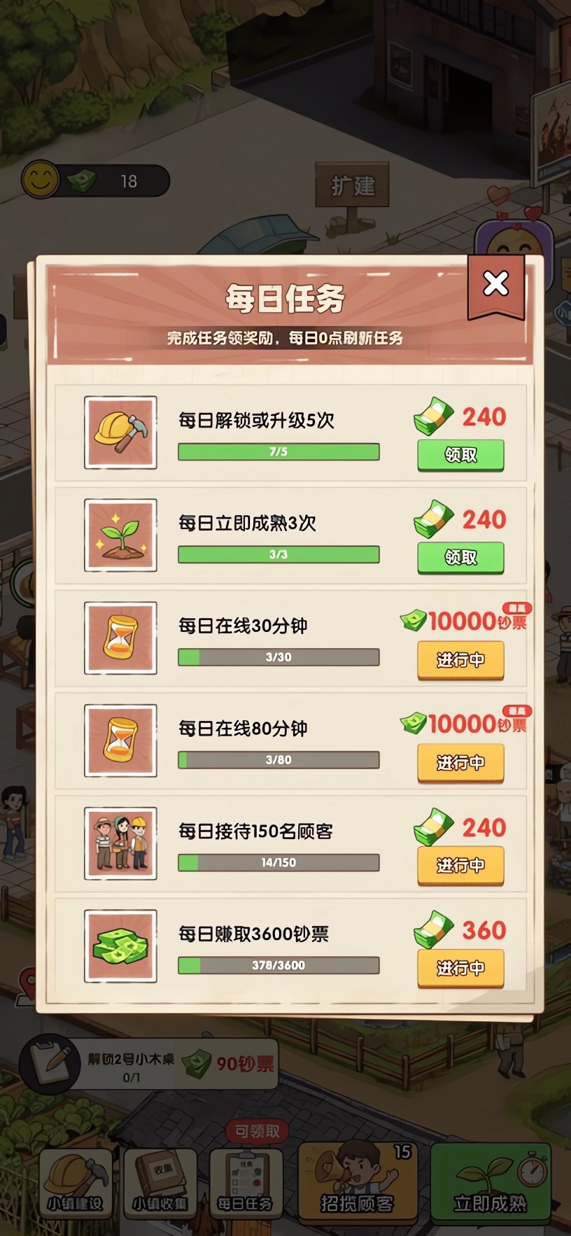 小镇悠闲生活手游官方正版是一款号称能够赚钱、赚红包的手机模拟经营类游戏,这款游戏能够为玩家营造出一个充满复古气息的九十年代的游戏场景,玩家所扮演的主角将会拥有领先于时代的商业头脑,可以根据自己的想法进行种植、养殖、钓鱼、推销、送外卖等一系列操作,这样一来就能够轻轻松松赚得盆满钵满,快速累积财富,建立起自己专属的商业帝国。