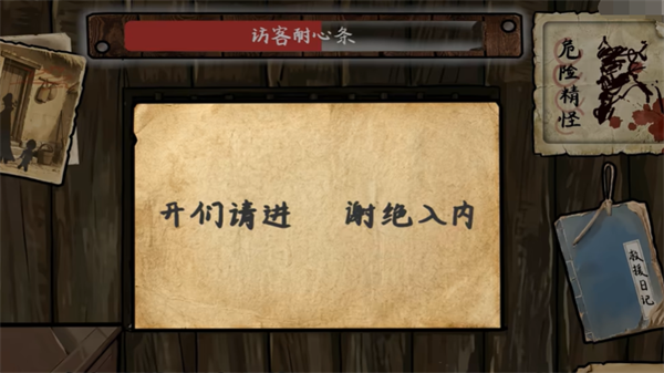 3、根据访客的反应,玩家需要做出决定:选择“开门请进”或“谢绝入内”,这是判断访客身份的重要一步。