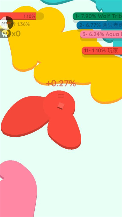 1、首先不能贪心!在这款游戏中圈出的领地自然是越大越好,然而不能一开始就肆无忌惮地跑离领地很远去试图圈出更大的领地,因为这是敌人很有可能乘虚而入,在你无法迅速返回领地自救的时候袭击你后方的尾巴,所以如下图所示:先控制纸片圈出自己的领地。
