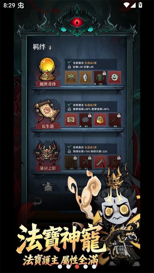 3、肉鸽构筑:在无尽轮回中获取诡异法器等,随机获得技能道具,自由构筑专属流派,每局体验不同。