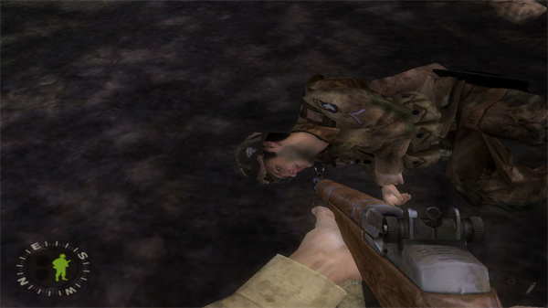 Mac带领小队试图与正在登陆作战的美陆军第4步兵师会合,我们还遇上了下士Hartsock。Mac命令你与Hartsock扫清大路后带着Leggett离开,如果没有关闭教学功能系统会教你如何指挥Hartsock配合战斗。前面农庄里有两名敌人挡路,先让Hartsock找到合适的掩蔽物后再让他实施压制,操纵Baker从右翼夹击轻松解决,战斗结束后别忘了按Z让Hartsock跟上。用同样方法干掉前面路口的两名德军,沿大路走消灭遭遇的迫击炮兵。再往前走,路边矮墙后又出现敌人,仍以Hartsock为火力压制,自己向侧面运动包抄歼灭。按指南针黄色箭头指示赶到前面水滩与列兵Garnett和Allen相遇,交谈之后奔至水洼中的伯朗宁重机枪阵地,按F就位后开始对付从海滩阵地上扑来的德军,不需要准确命中敌人,主要是向头上压制图标为红色的敌人扫射,注意右边弹药箱后靠近的德军,必要时可让Hartsock协助压制。等德军援兵告竭后,让Hartsock对躲在掩体后的敌人发起冲锋,用重机枪给他压阵完全是小菜一碟,战斗结束后上大路与Mac交谈,过关。