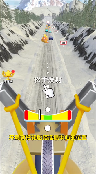 1、左右滑动轮胎来调整发射的位置,点击停止后会根据瞄准的位置来决定力度。