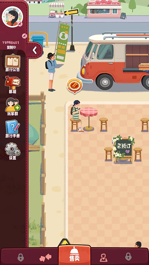1、打开旅行串串游戏,进入售卖界面,点击顾客上方的【食物】图标。