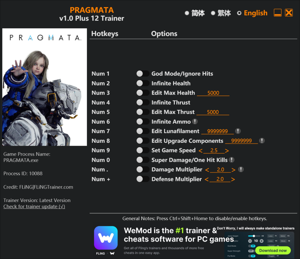 识质存在Pragmata十二项修改器下载 v1.0 风灵月影版