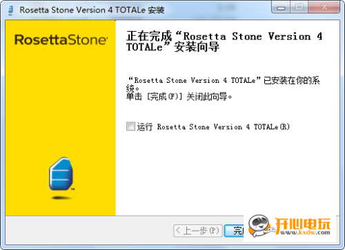 软件安装完把运行Rosetta Stone的选项去掉(这个一定要去掉),然后点击完成。