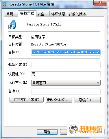 在罗塞塔石碑Rosetta Stone的属性中选择打开文件位置,打开软件的安装目录。