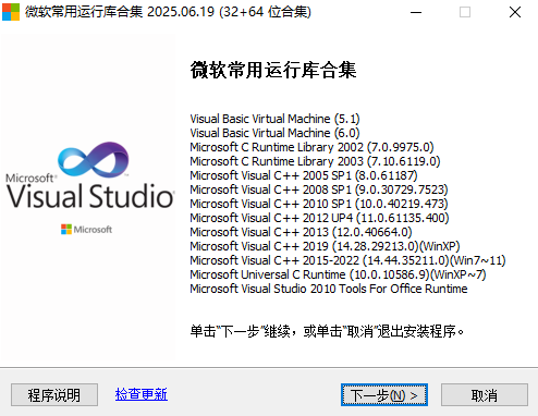 微软常用运行库合集2026官方最新版不仅为我们的用户提供了Visual C++ 2005、2008、2010、2013、2015等多个版本的运行库,同时这款软件还可以帮我们解决缺少库文件的问题,功能非常强大。